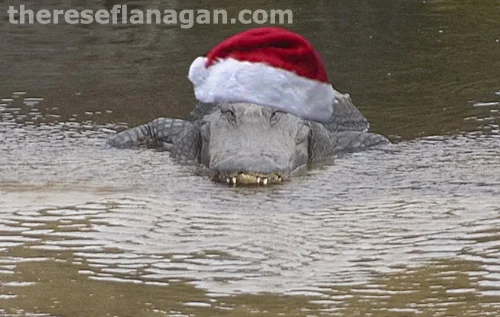 I had a photo of an alligator from my many walks along LaChua Trail in Gainesville, FL. I had a photo of a man wearing a Santa hat, from my hometown, Chicago, IL. Just add photoshop and you get this.